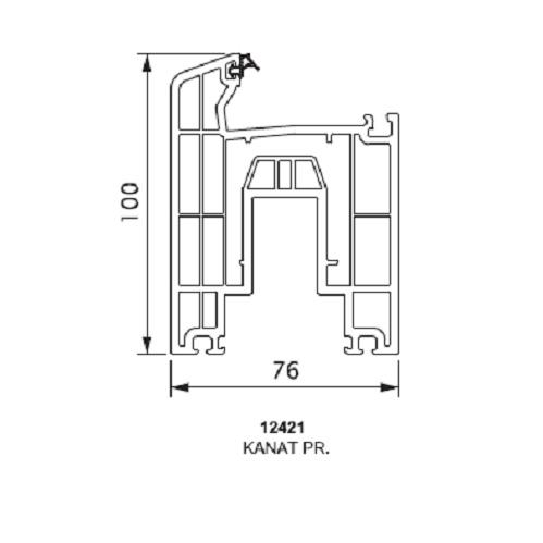 - Kanat profili 76 mm genişliğinde ve 4 odacıklıdır.